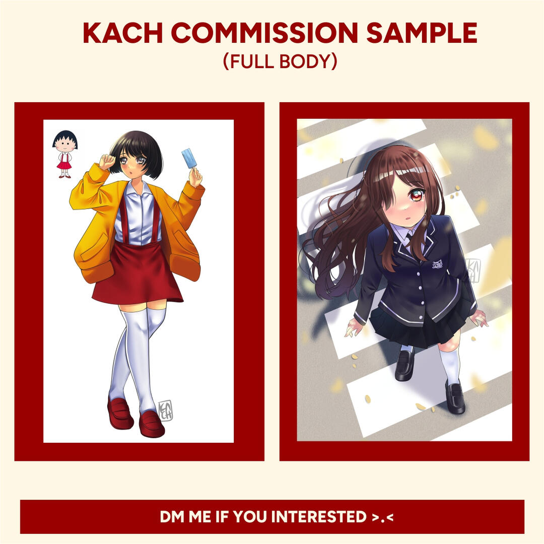 Hello! My name is Kach. I make illustration with anime style. You can see my pricelist and sample here :)
